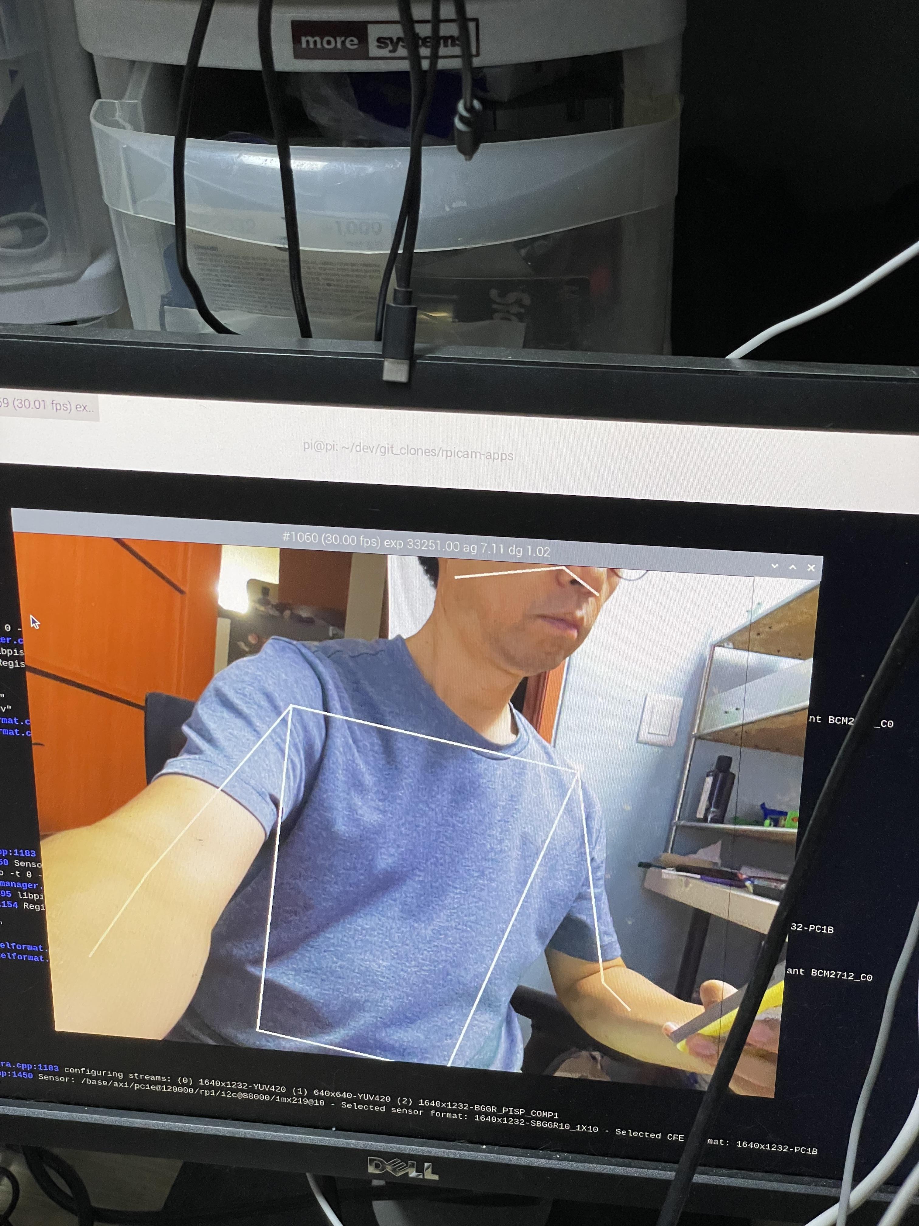 rpicam-hello -t 0 --post-process-file ~/rpicam-apps/assets/hailo_yolov8_pose.json --lores-width 640 --lores-height 640